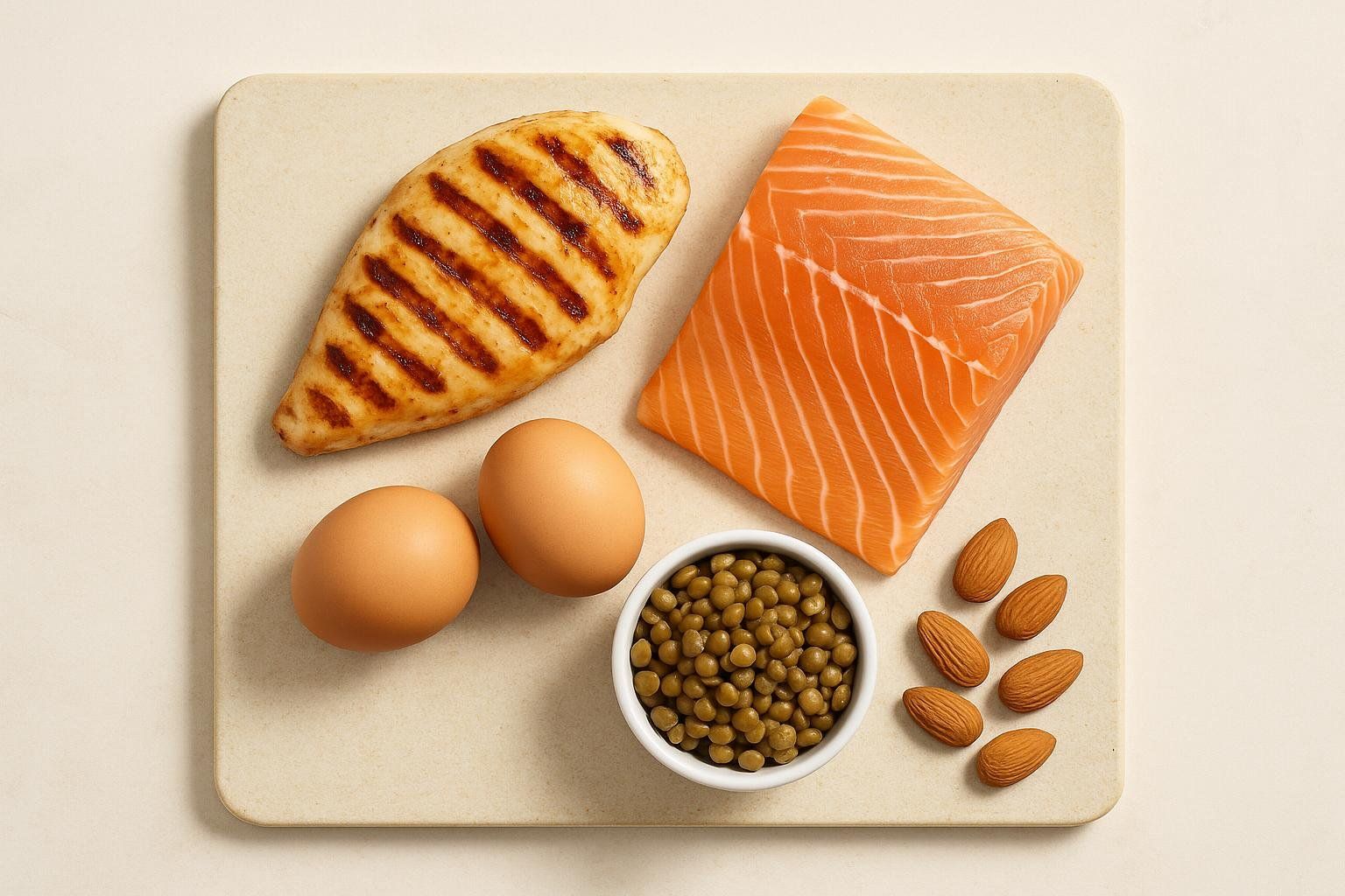 - Protein ≈ 1.6 g/kg body weight — Supports lean-mass retention during weight loss (AJCN, 2023).